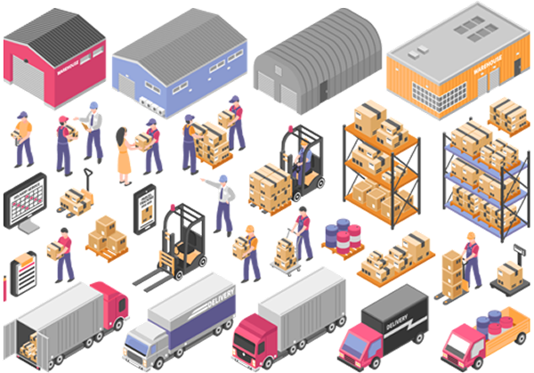 Sistem manajemen distribusi, bisnis proses, inventori pergudangan, proses manufaktur, dan penjualan secara online/offline.